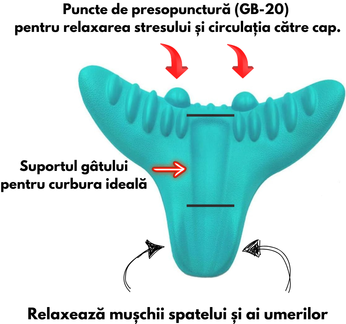 Ajută la relaxarea și susținerea gâtului, reducând tensiunea.